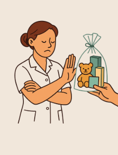 - Als je op een congres of symposium producten ontvangt, mag je ze niet uitdelen om te promoten, maar je mag ze wel aan ouders geven in kwetsbare omstandigheden of noodsituaties.