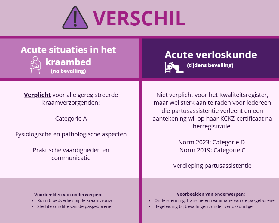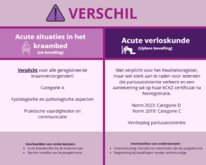 - Acute verloskunde is voor kraamverzorgenden die kiezen voor verdieping in partusassistentie, maar dit is geen verplichting voor het Kwaliteitsregister.